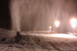 Snön vi har sprutat nedre delen av stora skidbacken kommer att pistas ut så den går att använda som pulkabacke.